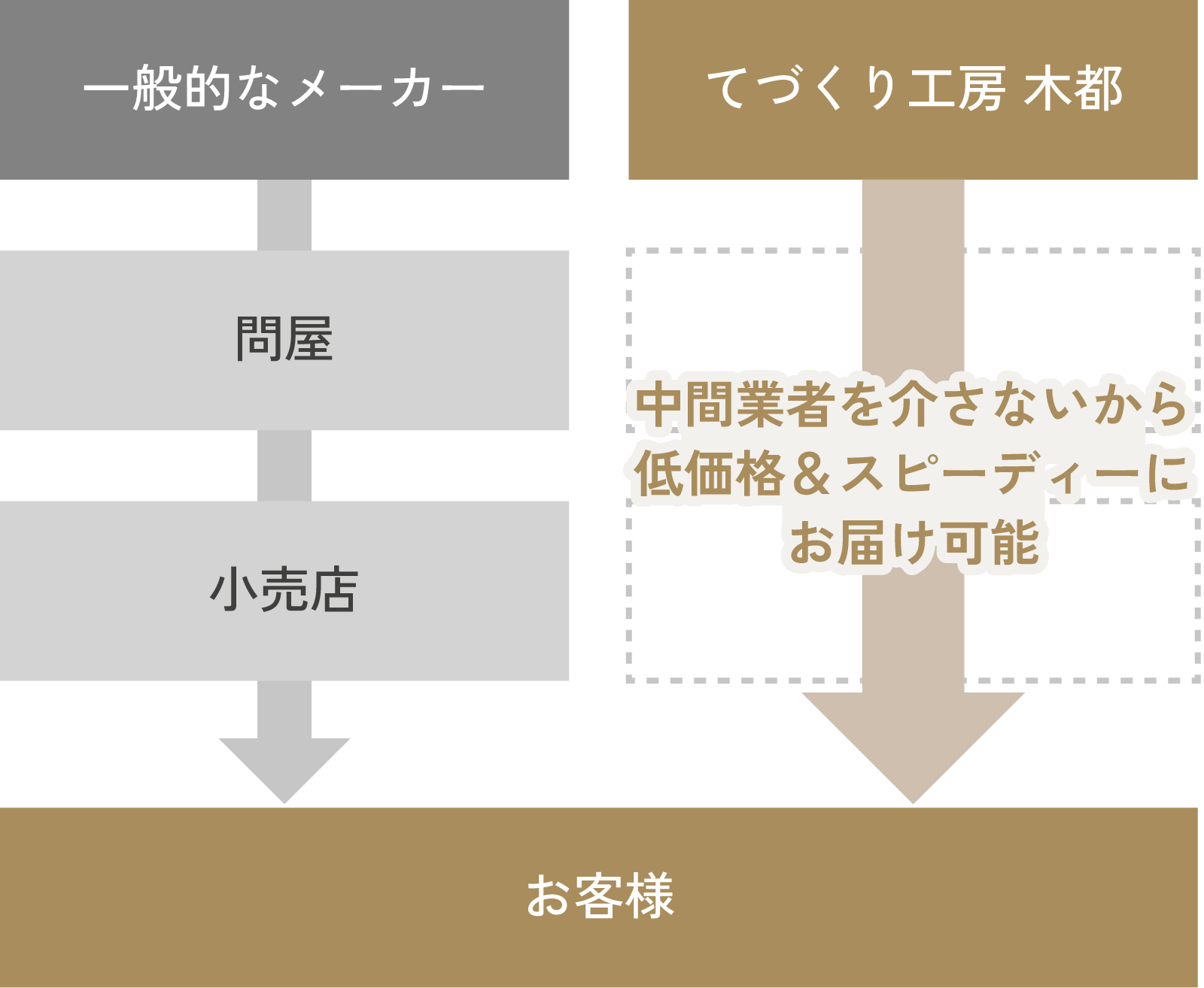 てづくり工房 木都では中間業者を介さず、お客様に直接お届けいたします。