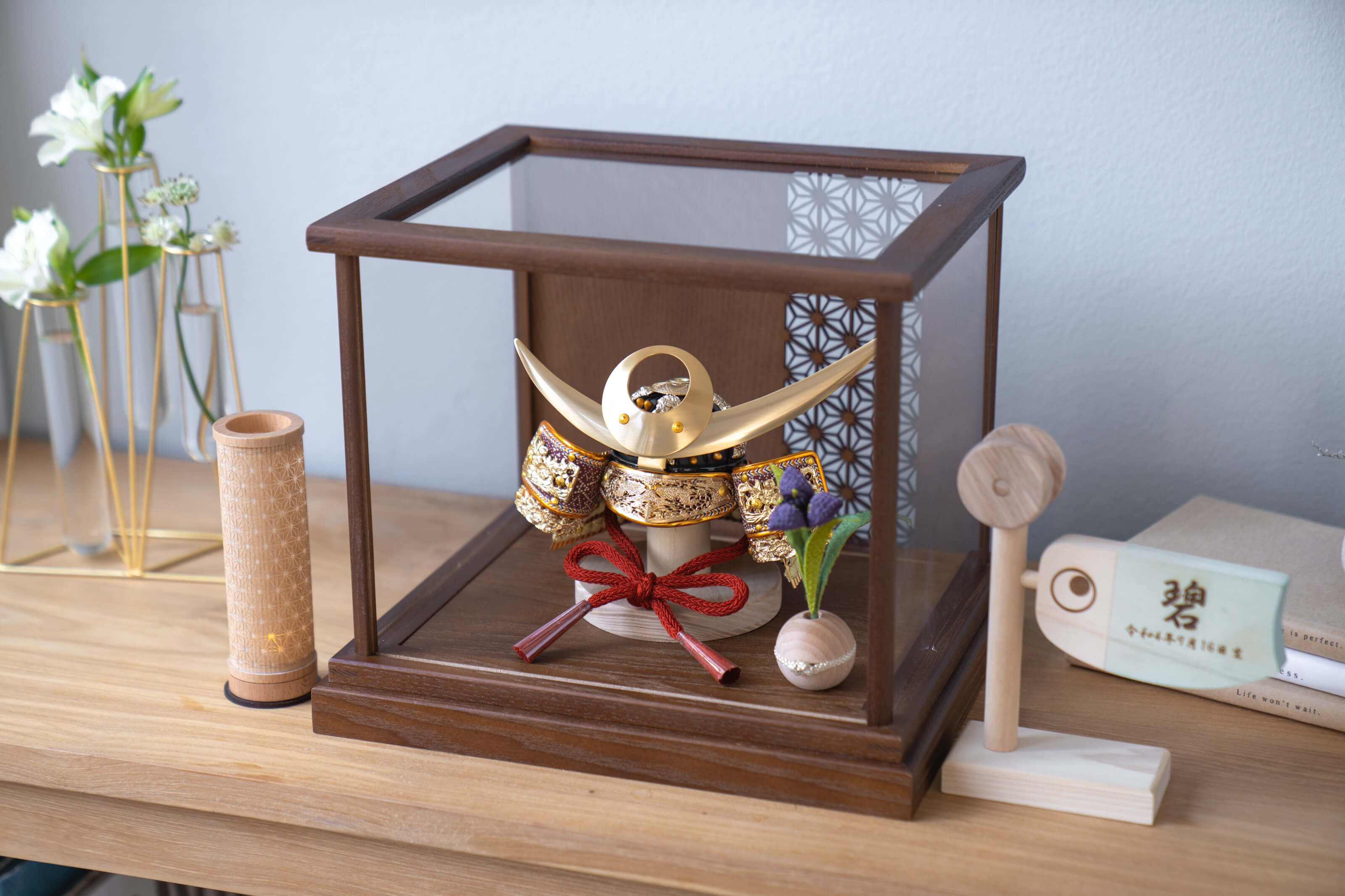 天然木の風合いを生かした木都の破魔弓は五月人形と一緒に飾るのにぴったり。