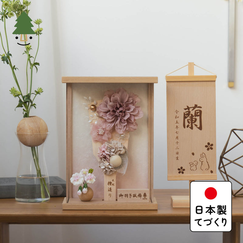 天然木の風合いを生かした木都の羽子板はひな人形と一緒に飾るのにぴったり。