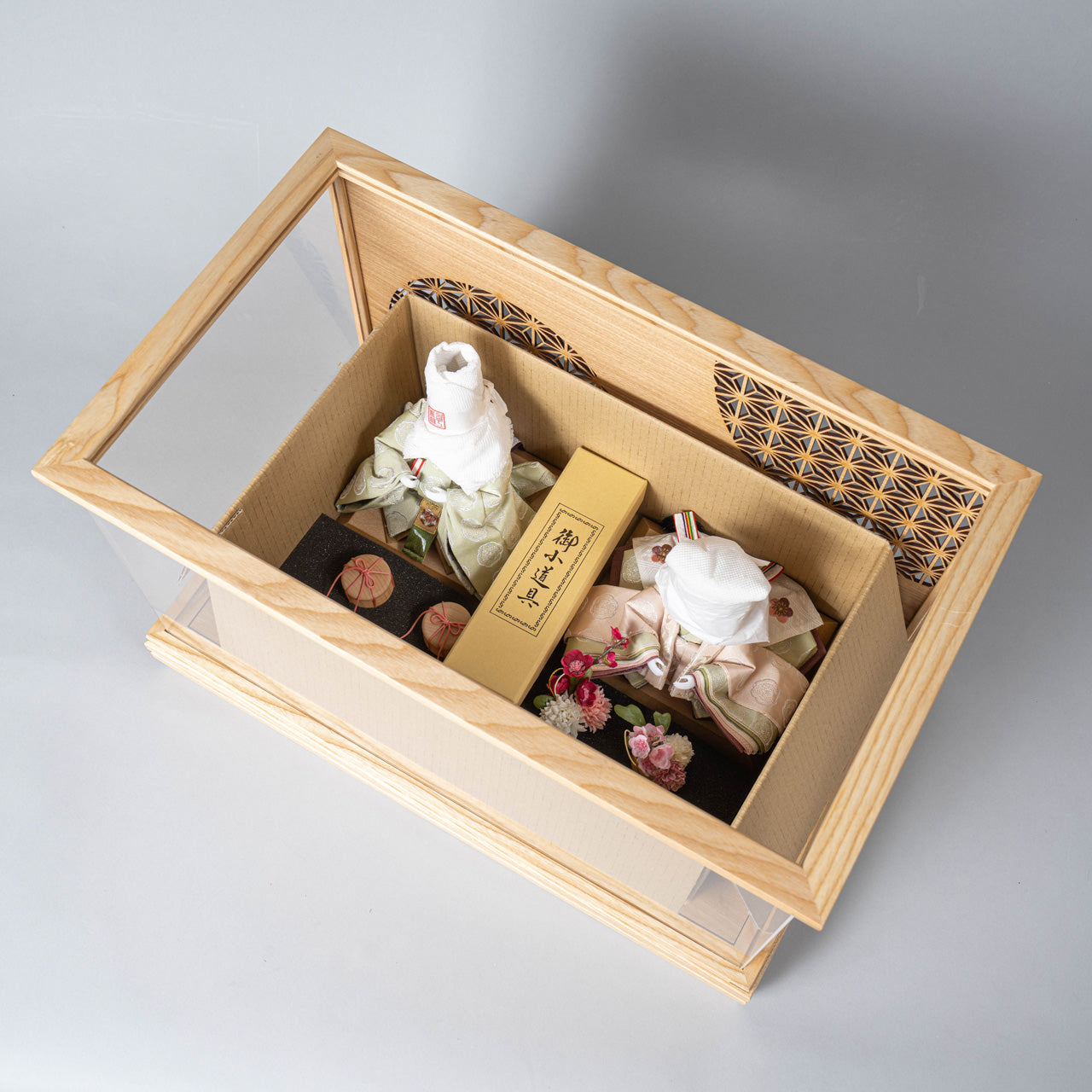伝統工芸の技術、裏側や後ろ側、内部の見えない箇所や素材にまでこだわり抜いたひな人形。道具も木のぬくもりを感じて頂くために無垢材を使用しております。