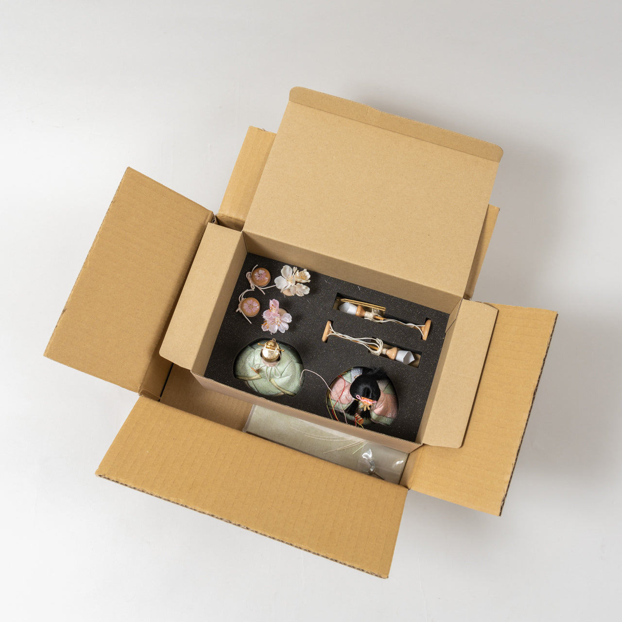 そんなコンセプトから生まれた、親しみやすく、お子様と一緒に飾れる「ことの木目込ひな」です。