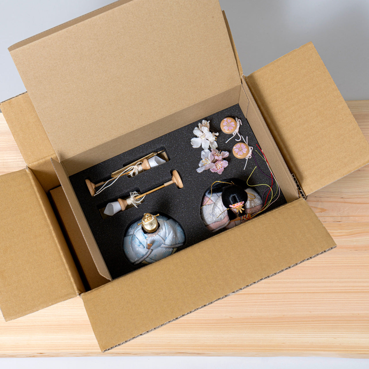 そんなコンセプトから生まれた、親しみやすく、お子様と一緒に飾れる「ことの木目込ひな」です。
