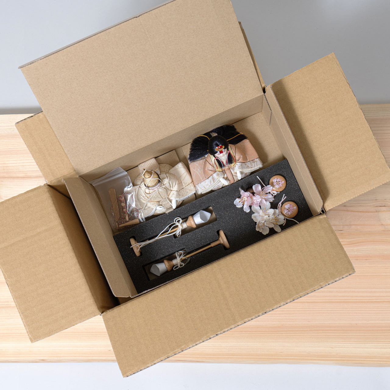 天然木の風合いを生かした木都の羽子板はひな人形と一緒に飾るのにぴったり。