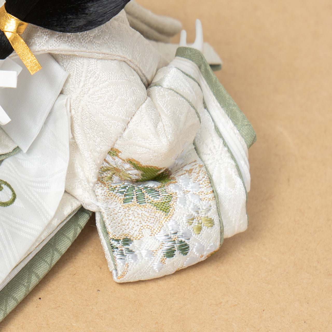 上質な糸から織られた正絹西陣織と和紙を使用し、しなやかさを保ちつつ着物の形が崩れないよう工夫しています。