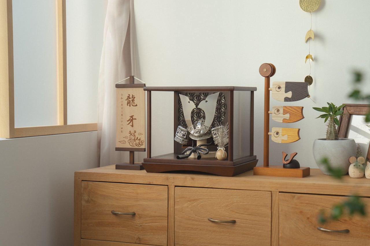天然木の風合いを生かした木都の破魔弓は五月人形と一緒に飾るのにぴったり。
