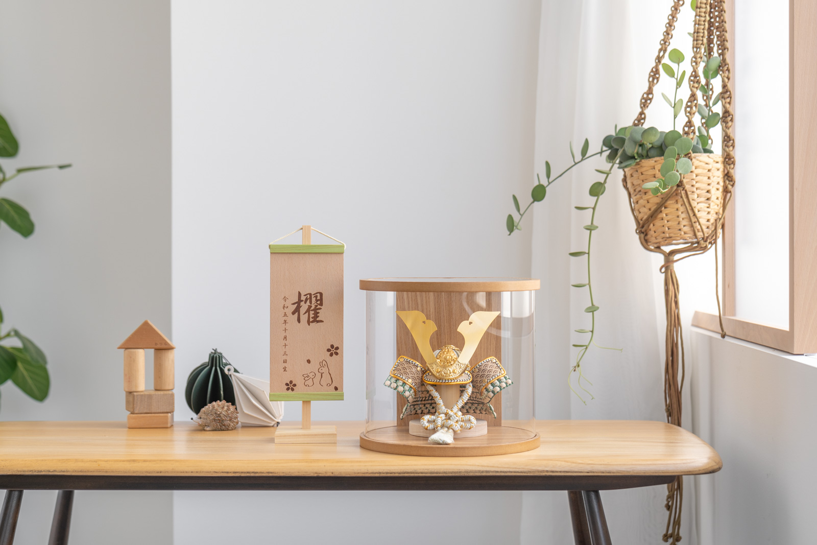 親しみやすく、お子様と手に取って一緒に飾れる 「ことのオリジナル兜」です。