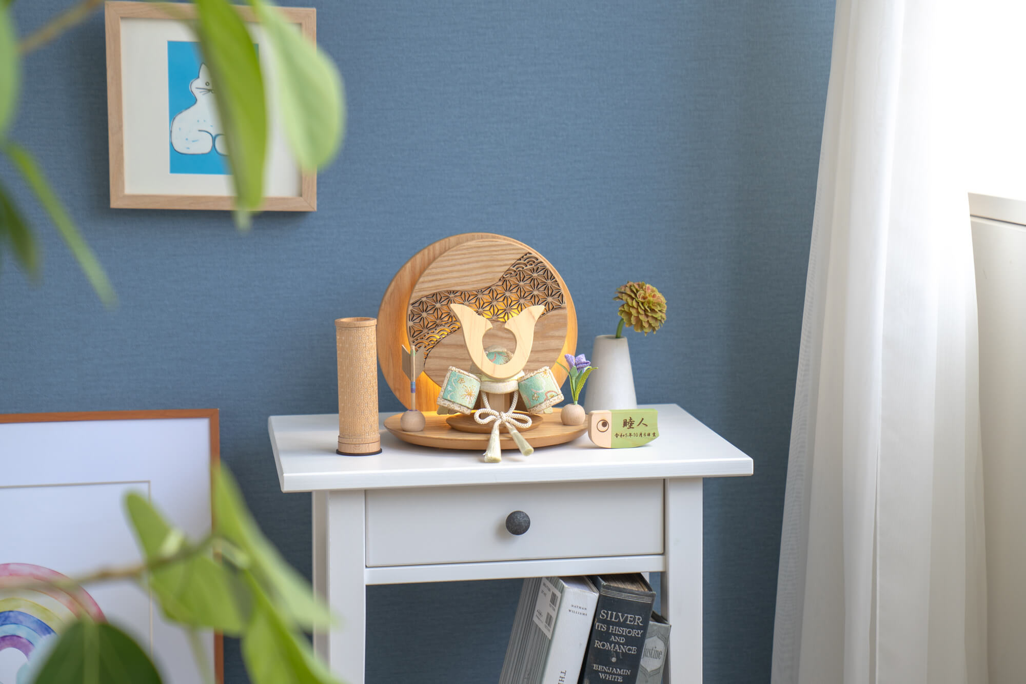 てづくり工房「木都」の職人が、伝統工芸の技術と天然木の素材を活かし、真心込めて1つ1つ丁寧につくりました。親しみやすく、お子様と 手に取って一緒に飾れる「ことの木目込かぶと」です。