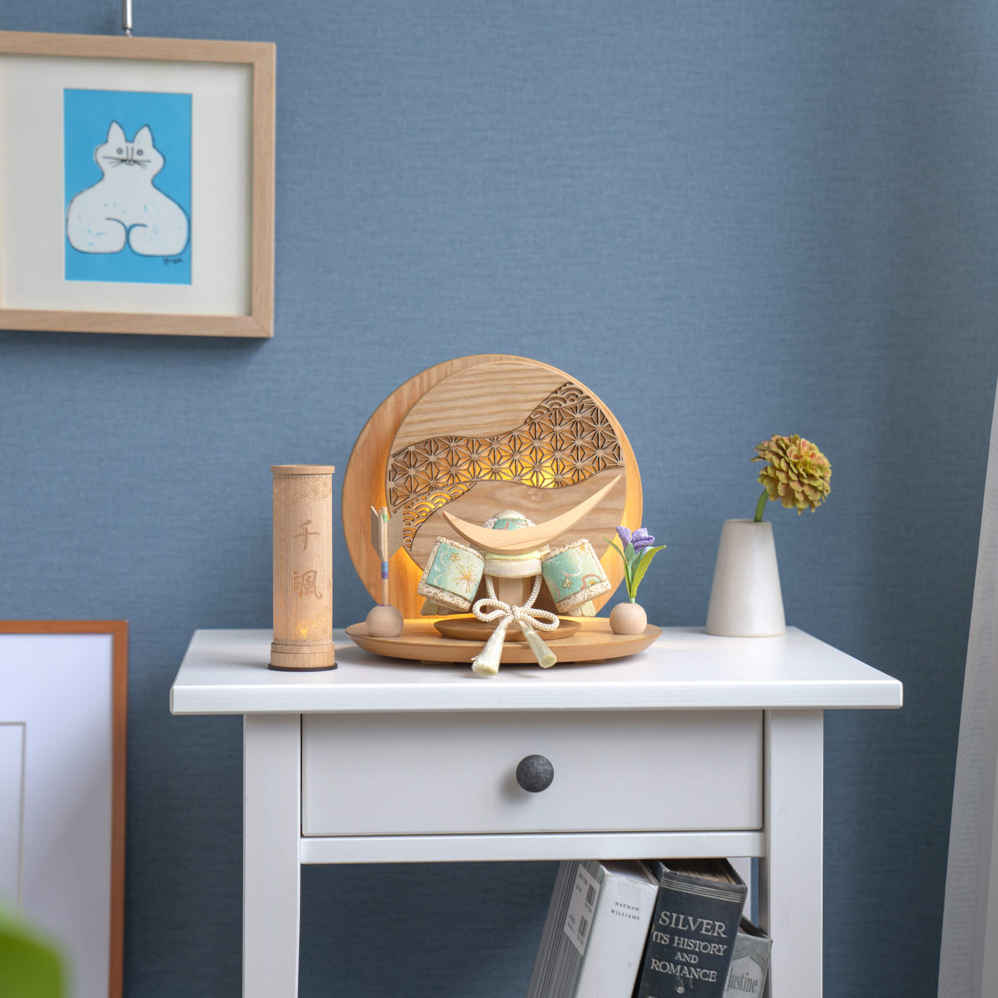 日本の天然木でつくった節句人形 ことの木目込かぶと