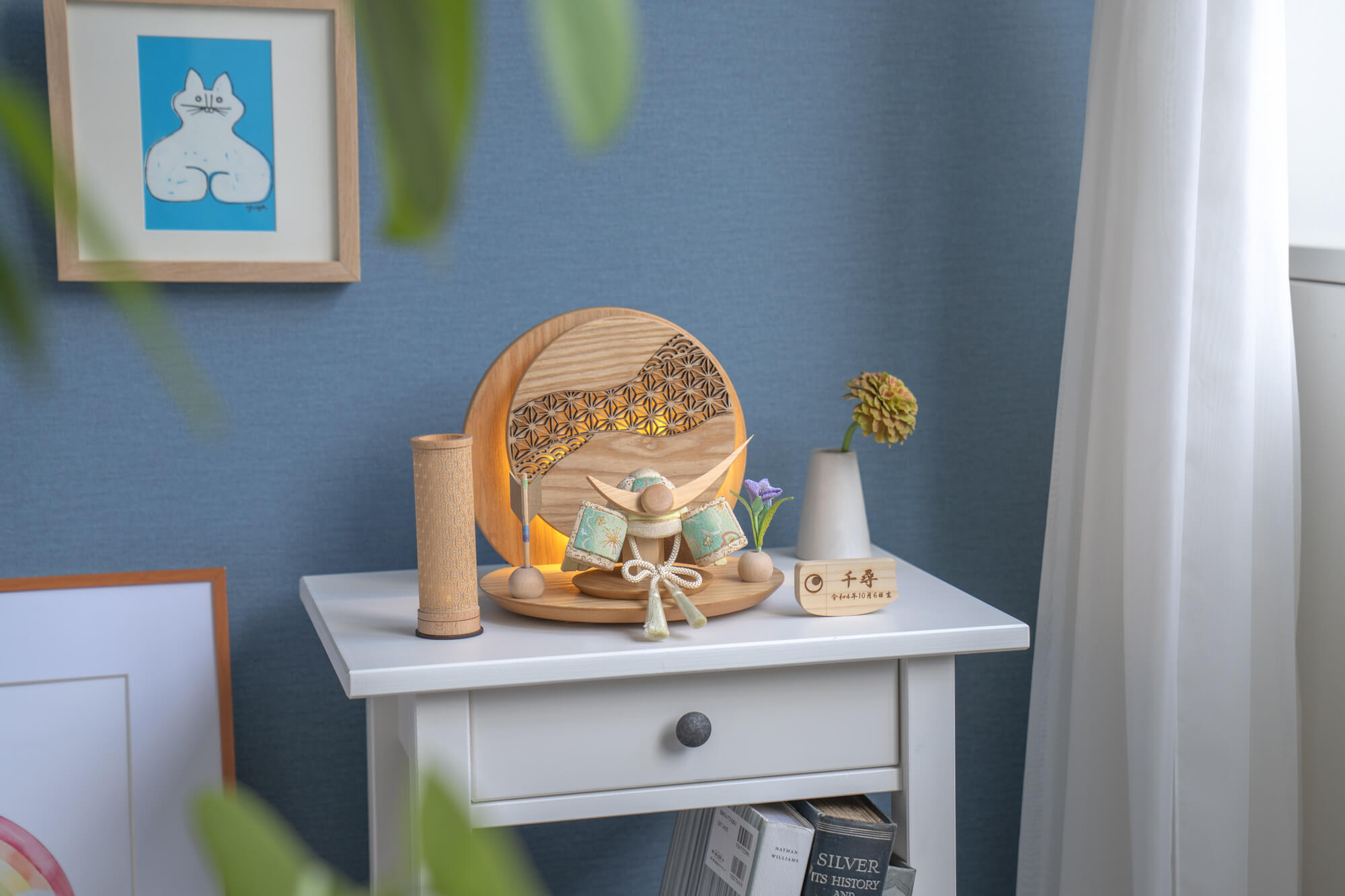 日本の天然木でつくった節句人形 ことの木目込かぶと