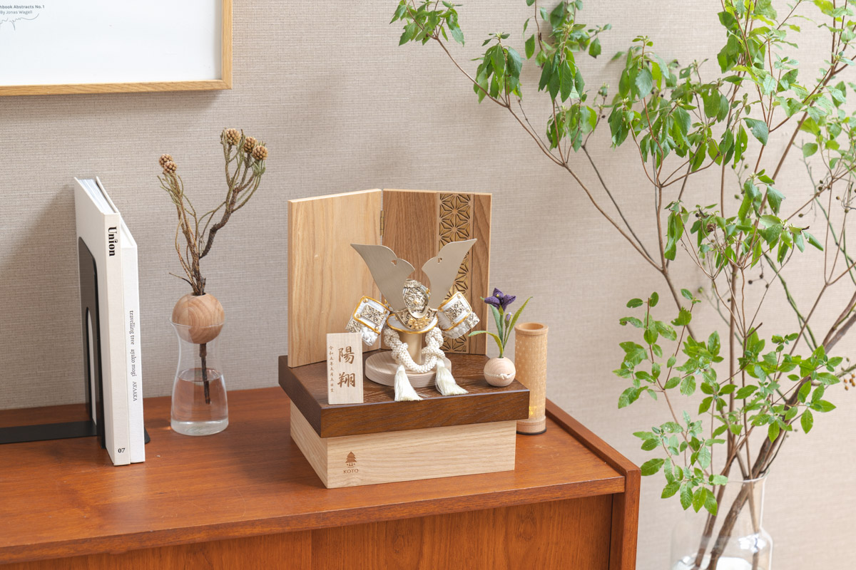 親しみやすく、お子様と手に取って一緒に飾れる「ことの兜」です。