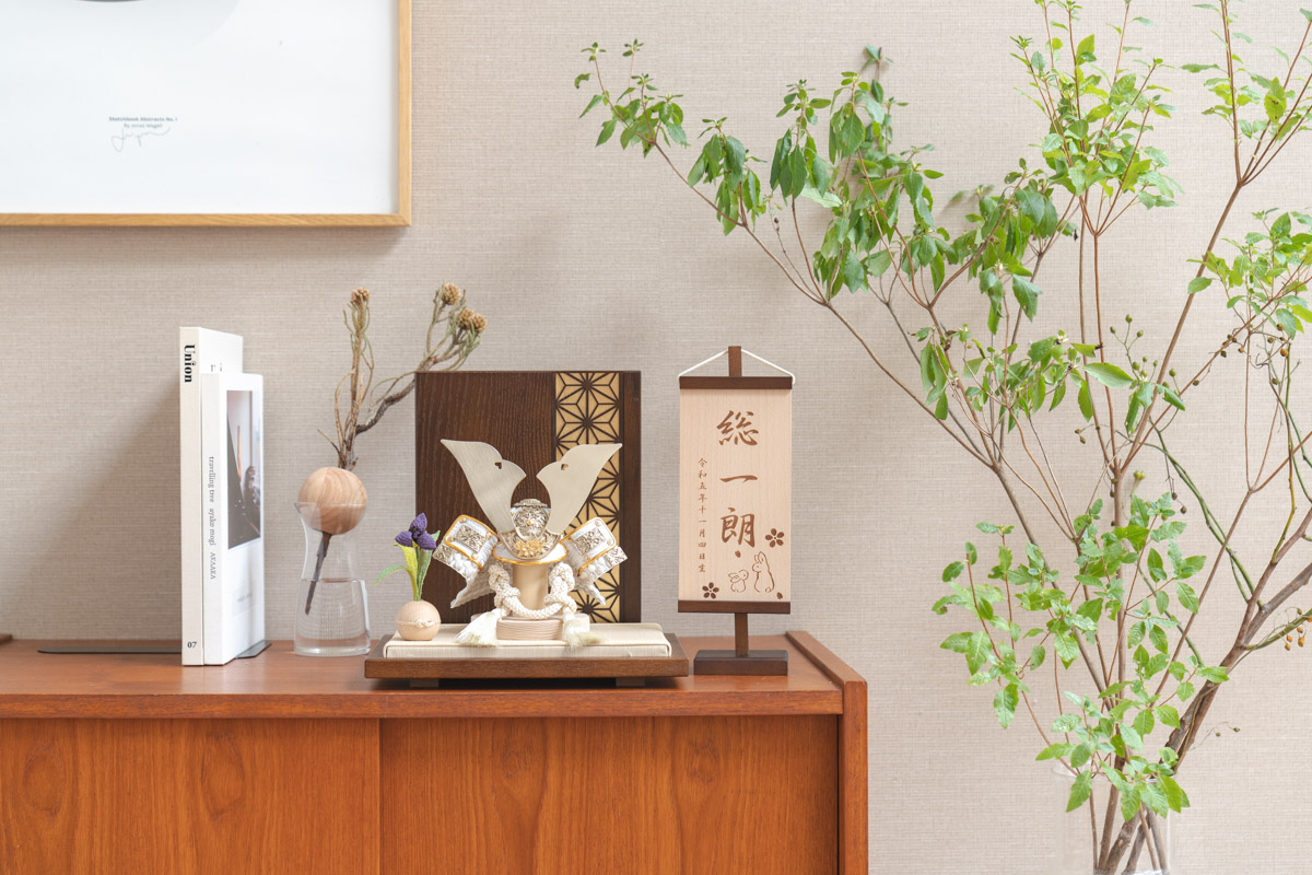 親しみやすく、お子様と手に取って一緒に飾れる「ことの兜」です。