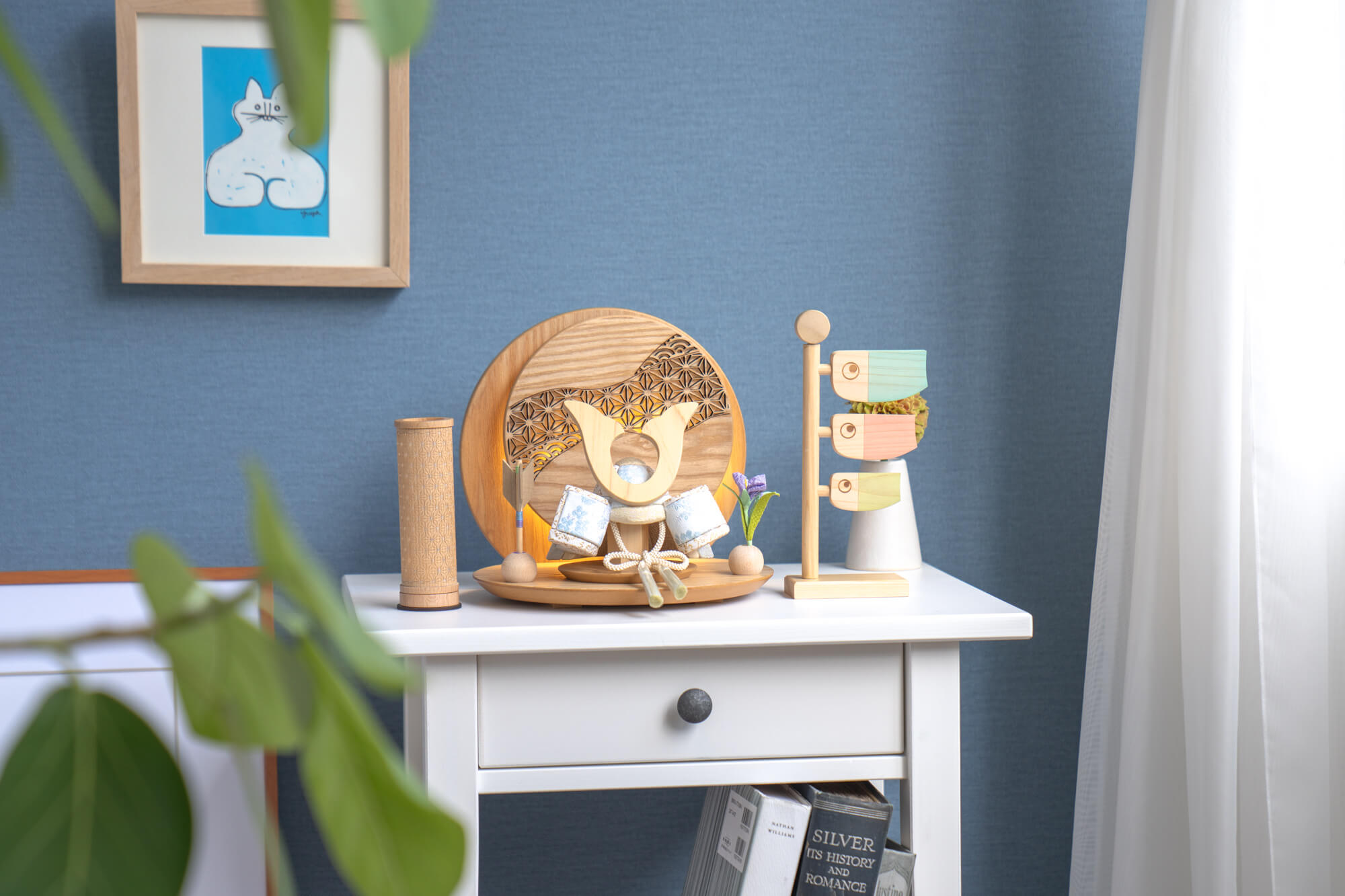 日本の天然木でつくった節句人形 ことの木目込かぶと