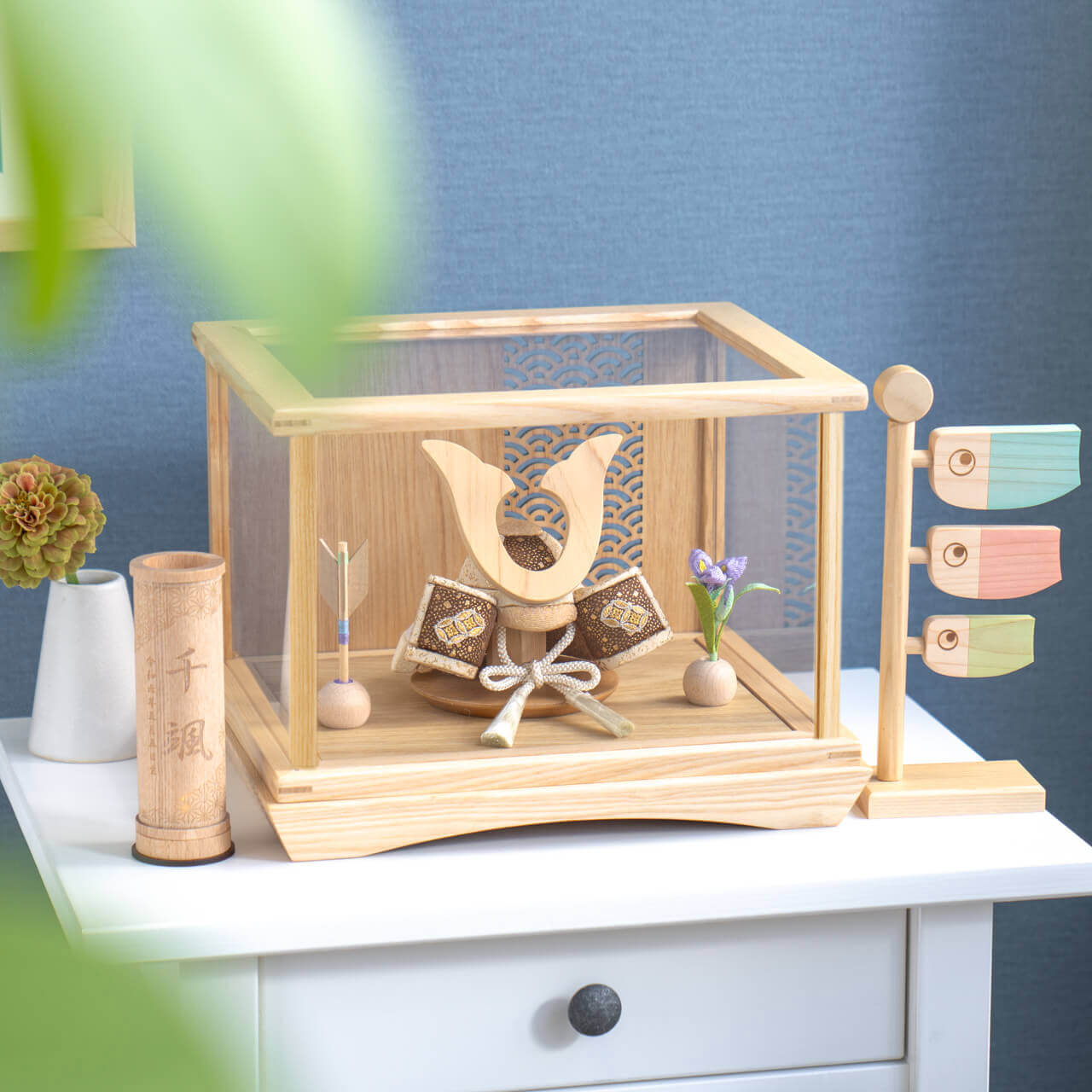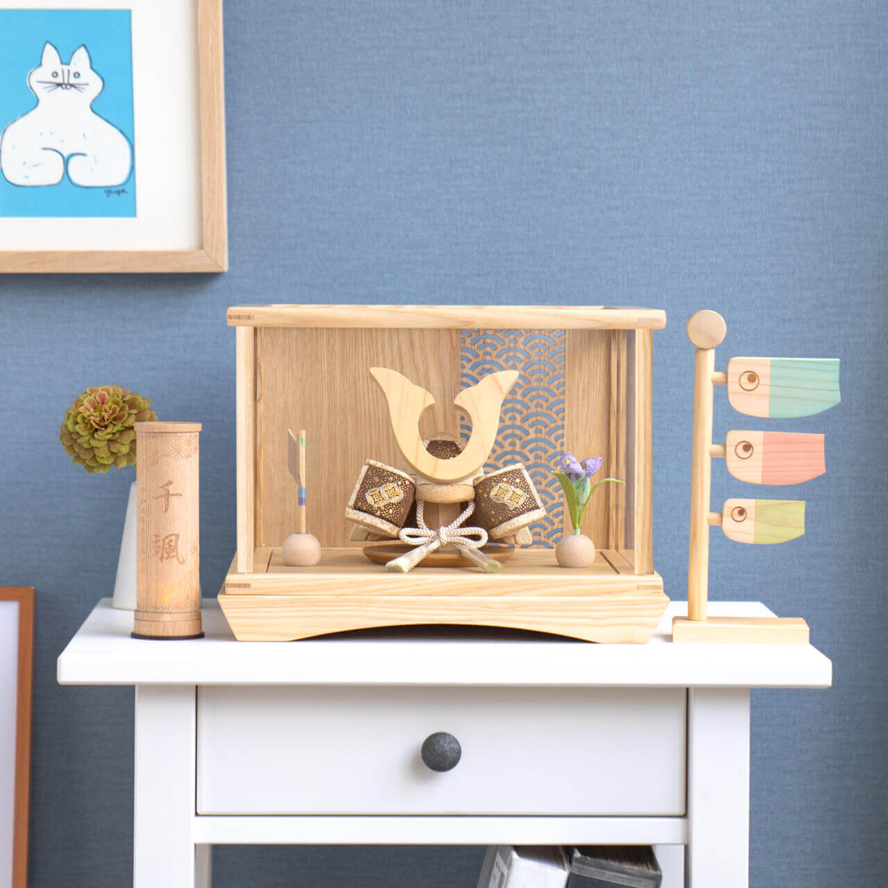 日本の天然木でつくった節句人形 ことの木目込かぶと