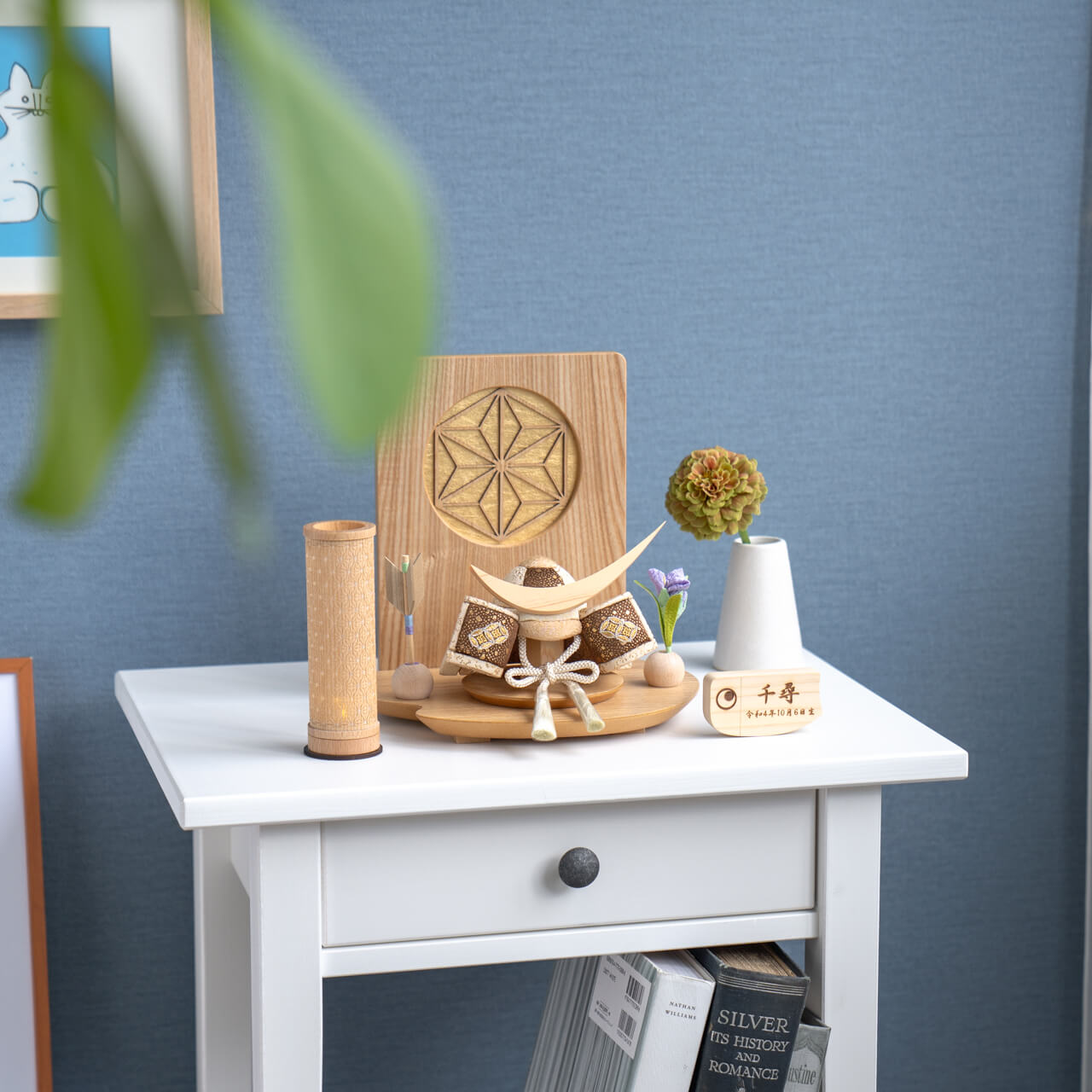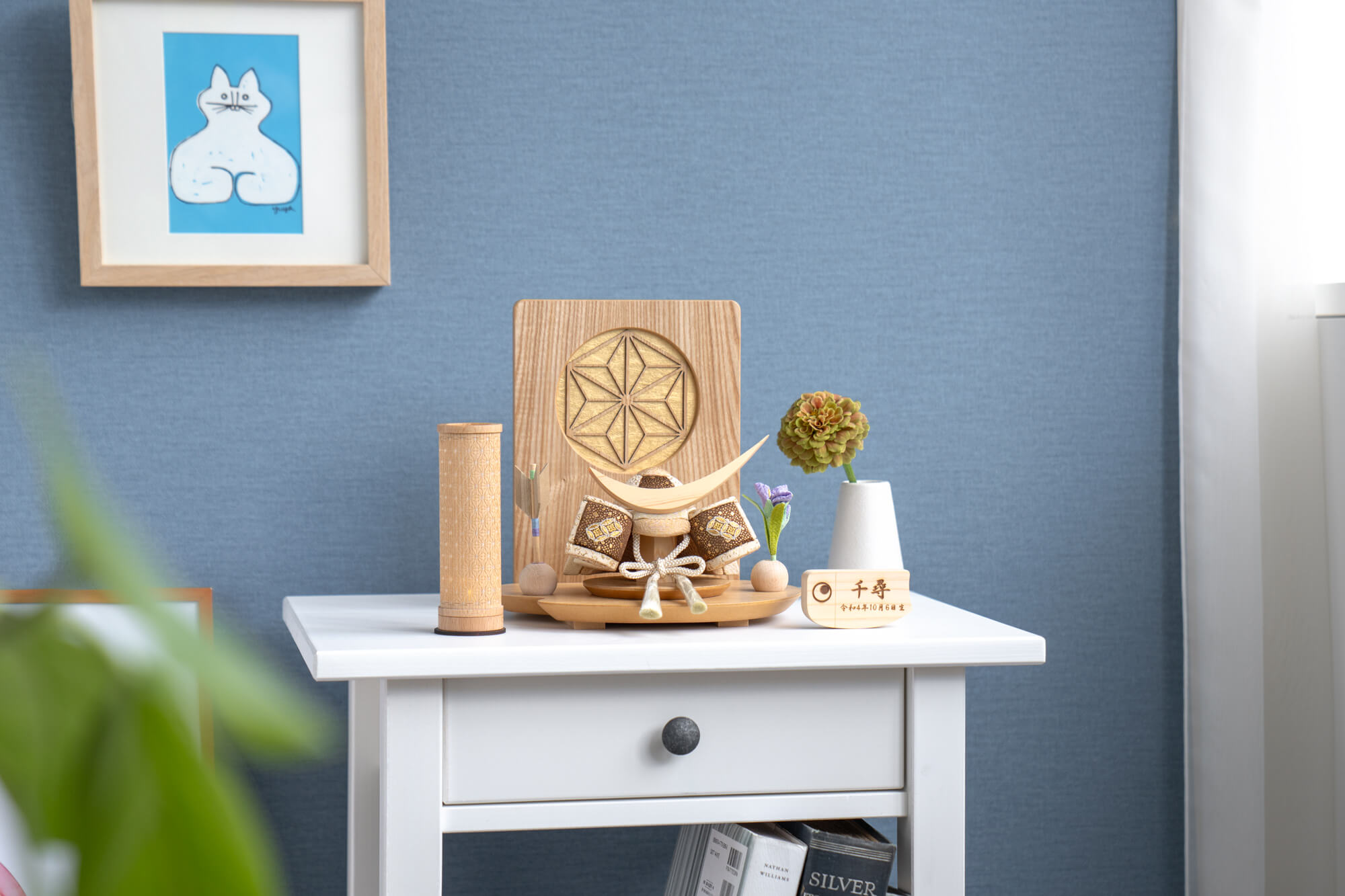 コンパクトサイズのお人形・お飾りと一緒に飾るのにぴったりな名前旗です。