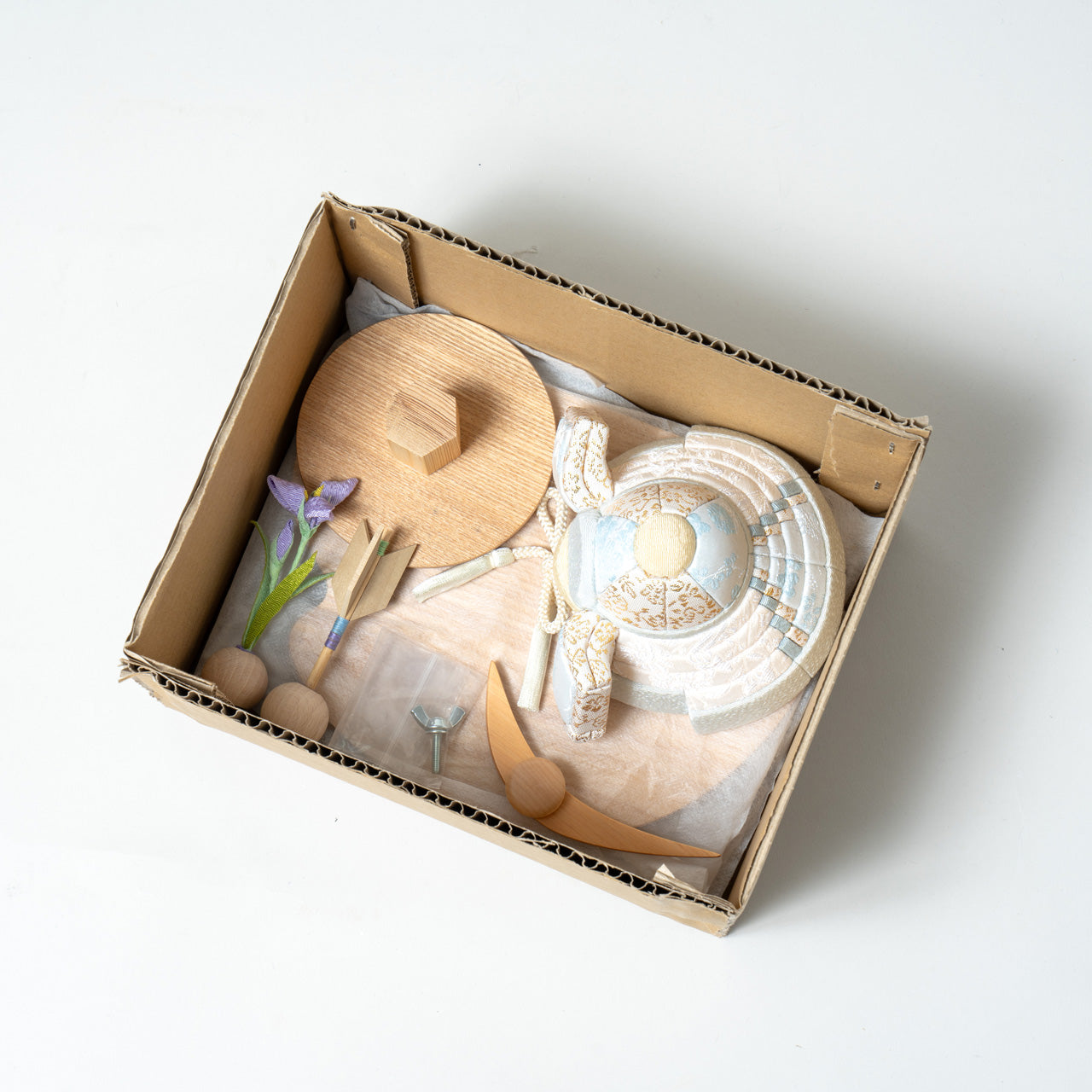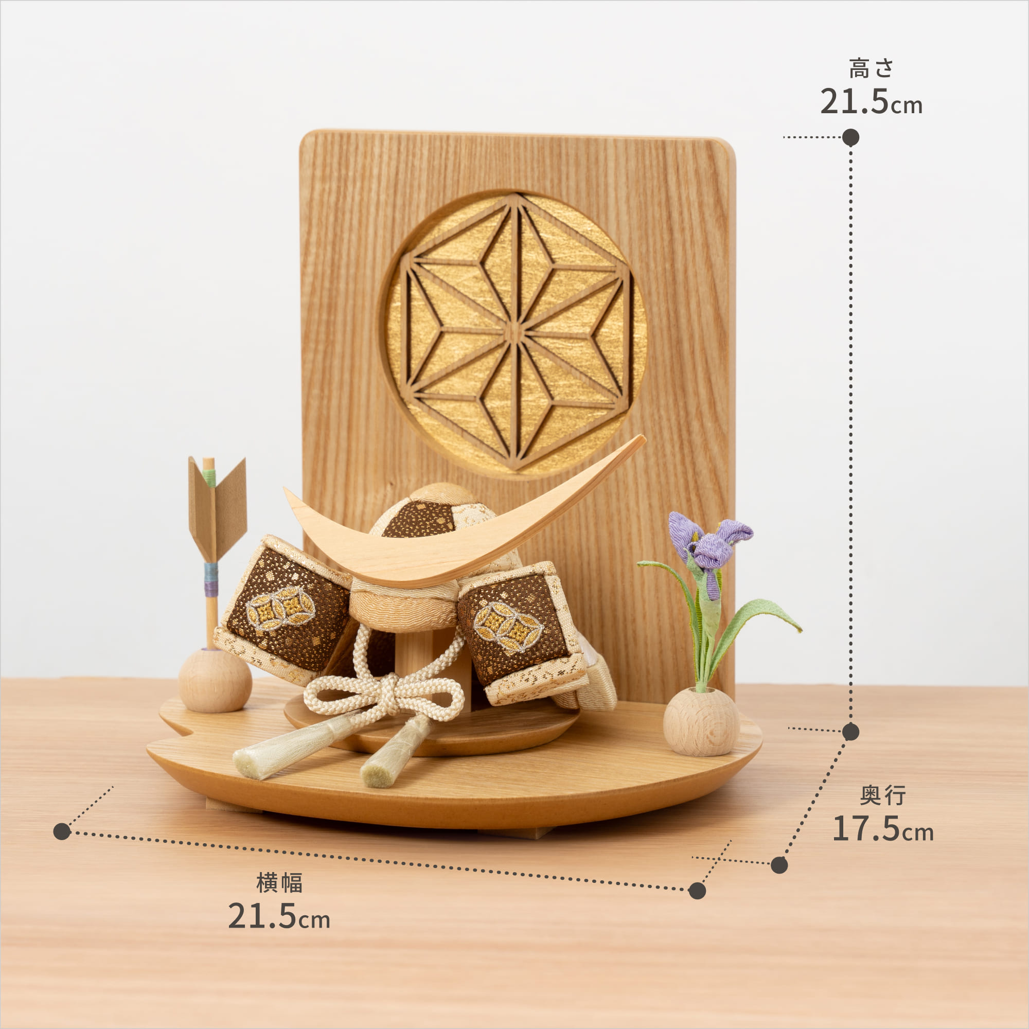 日本の天然木でつくった節句人形 ことの木目込かぶと
