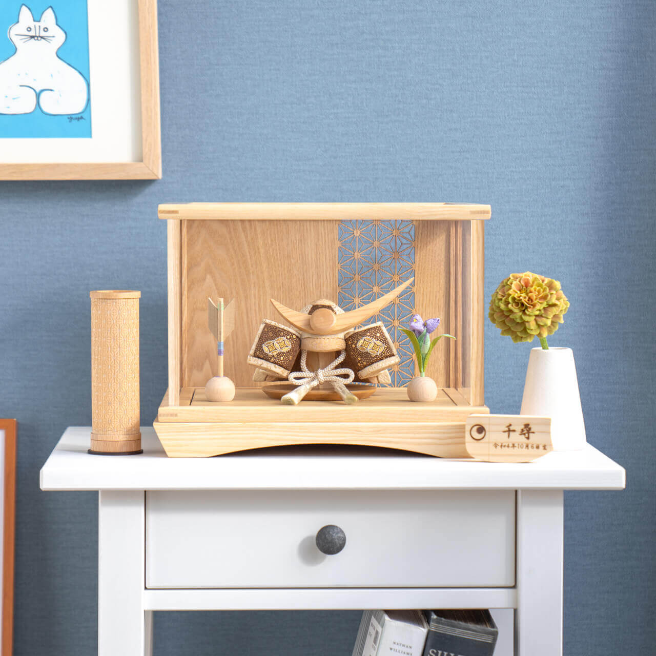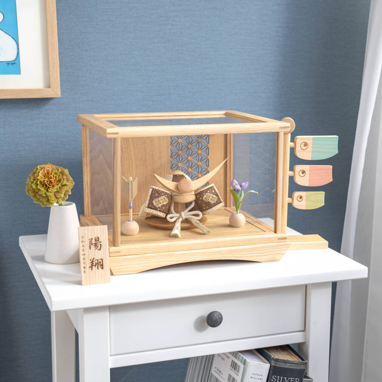 日本の天然木でつくった節句人形 ことの木目込かぶと