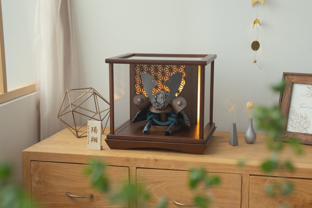 てづくり工房「木都」の職人が、伝統工芸の技術と天然木の素材を活かし、真心込めて1つ1つ丁寧につくりました。親しみやすく、お子様と 手に取って一緒に飾れることの「ことのおぼこ兜」です。