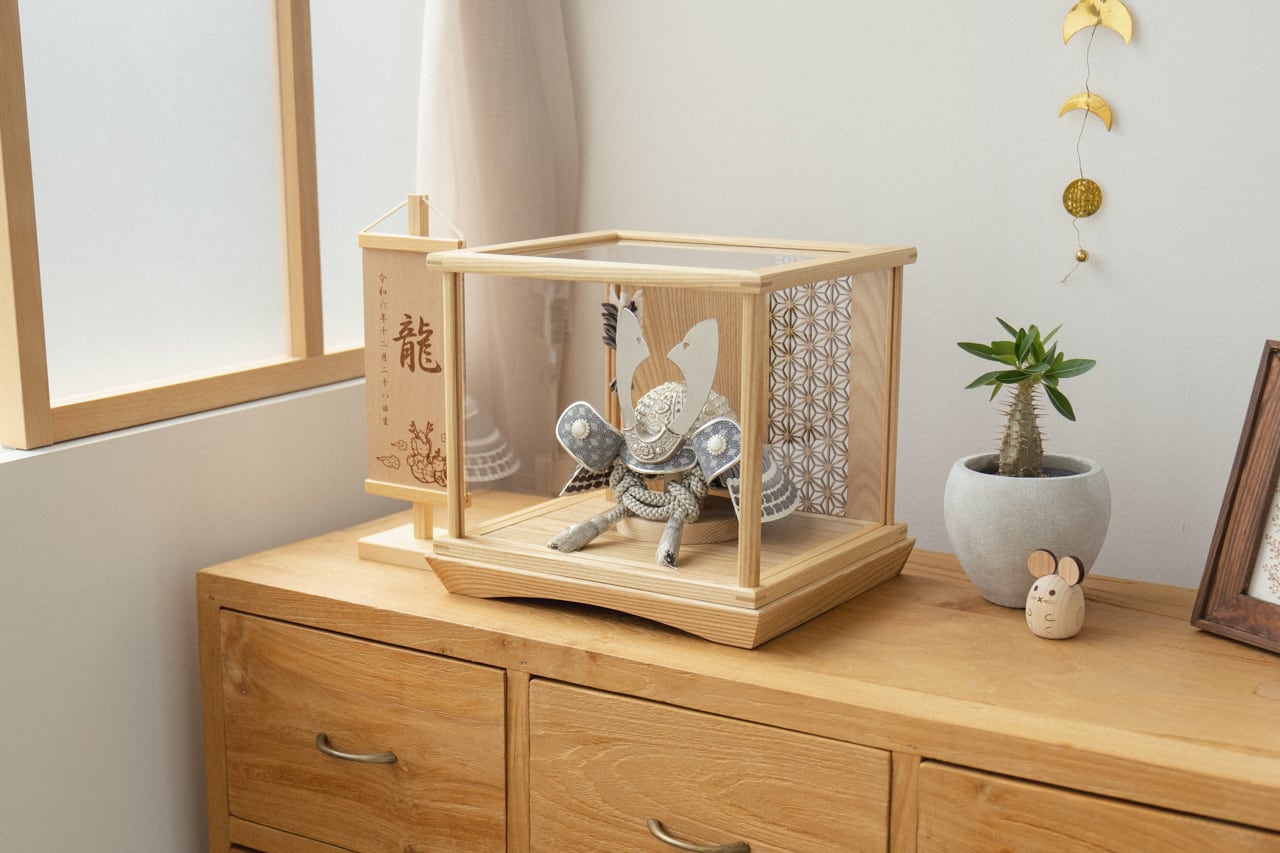 てづくり工房「木都」の職人が、伝統工芸の技術と天然木の素材を活かし、真心込めて1つ1つ丁寧につくりました。親しみやすく、お子様と 手に取って一緒に飾れることの「ことのおぼこ兜」です。