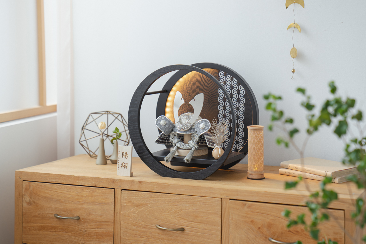 てづくり工房「木都」の職人が、伝統工芸の技術と天然木の素材を活かし、真心込めて1つ1つ丁寧につくりました。親しみやすく、お子様と 手に取って一緒に飾れることの「ことのおぼこ兜」です。