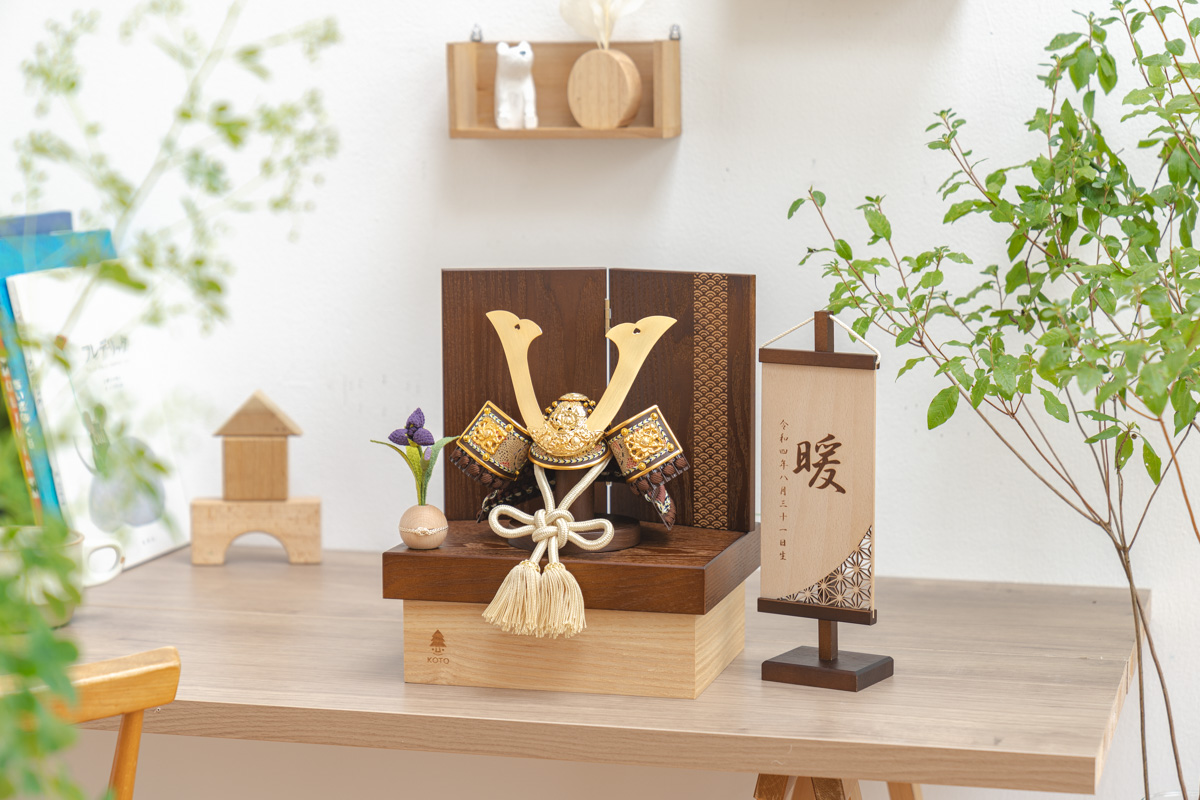 親しみやすく、お子様と手に取って一緒に飾れる「ことの兜」です。