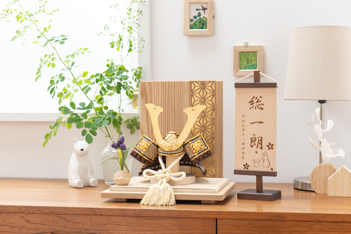 親しみやすく、お子様と手に取って一緒に飾れる「ことの兜」です。
