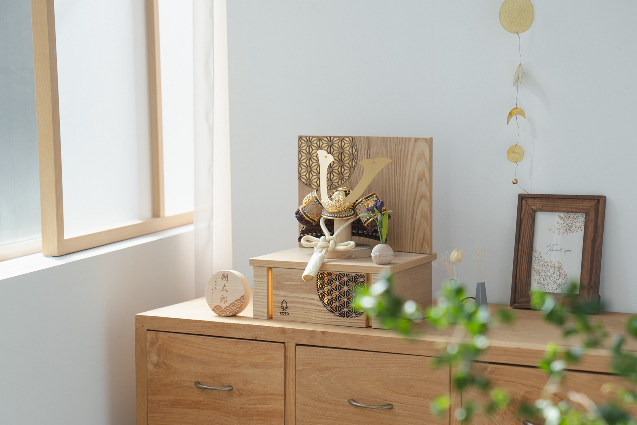 親しみやすく、お子様と手に取って一緒に飾れる「ことの兜」です。