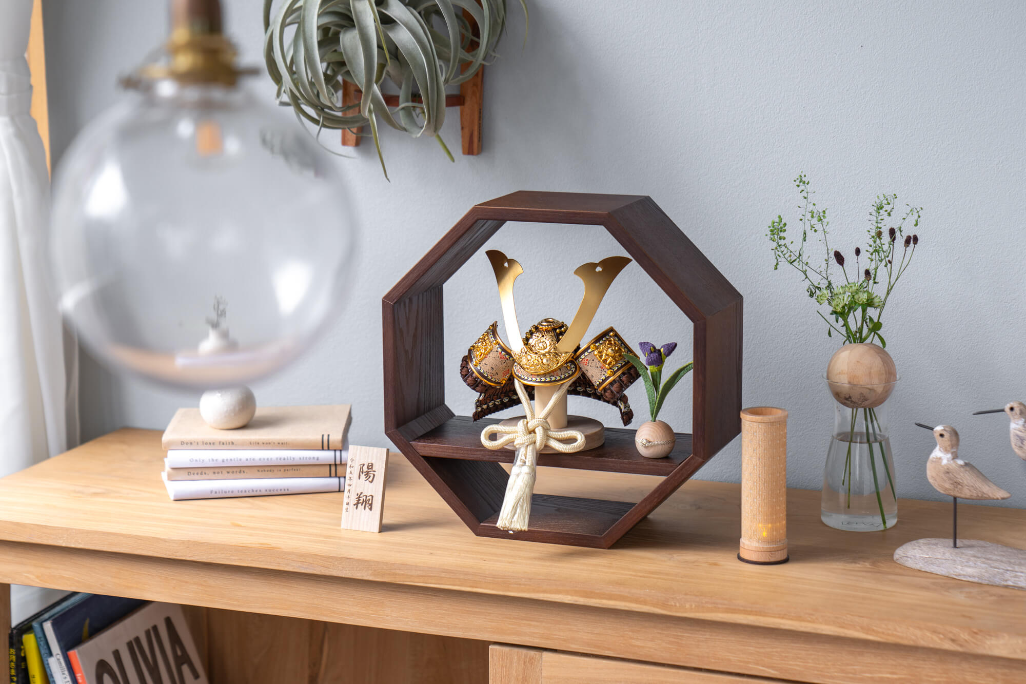 伝統的な兜をモダンに仕上げ茶で統一されたシンプルなデザイン