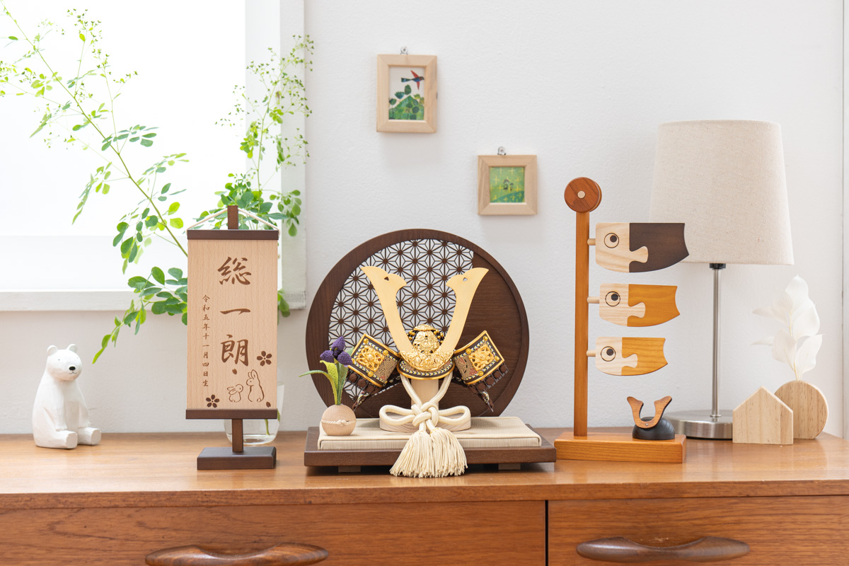 伝統的な兜をモダンに仕上げ茶で統一されたシンプルなデザイン