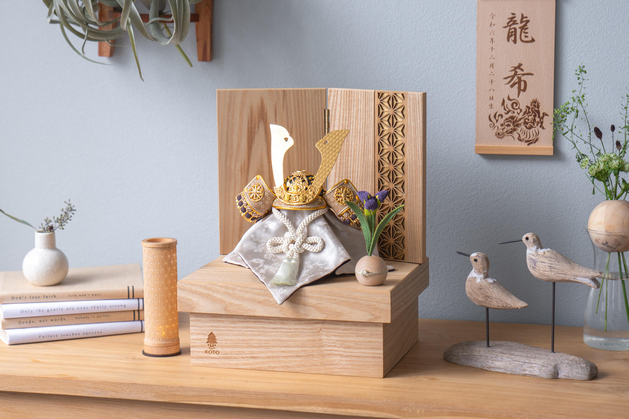 親しみやすく、お子様と手に取って一緒に飾れる「ことの兜」です。