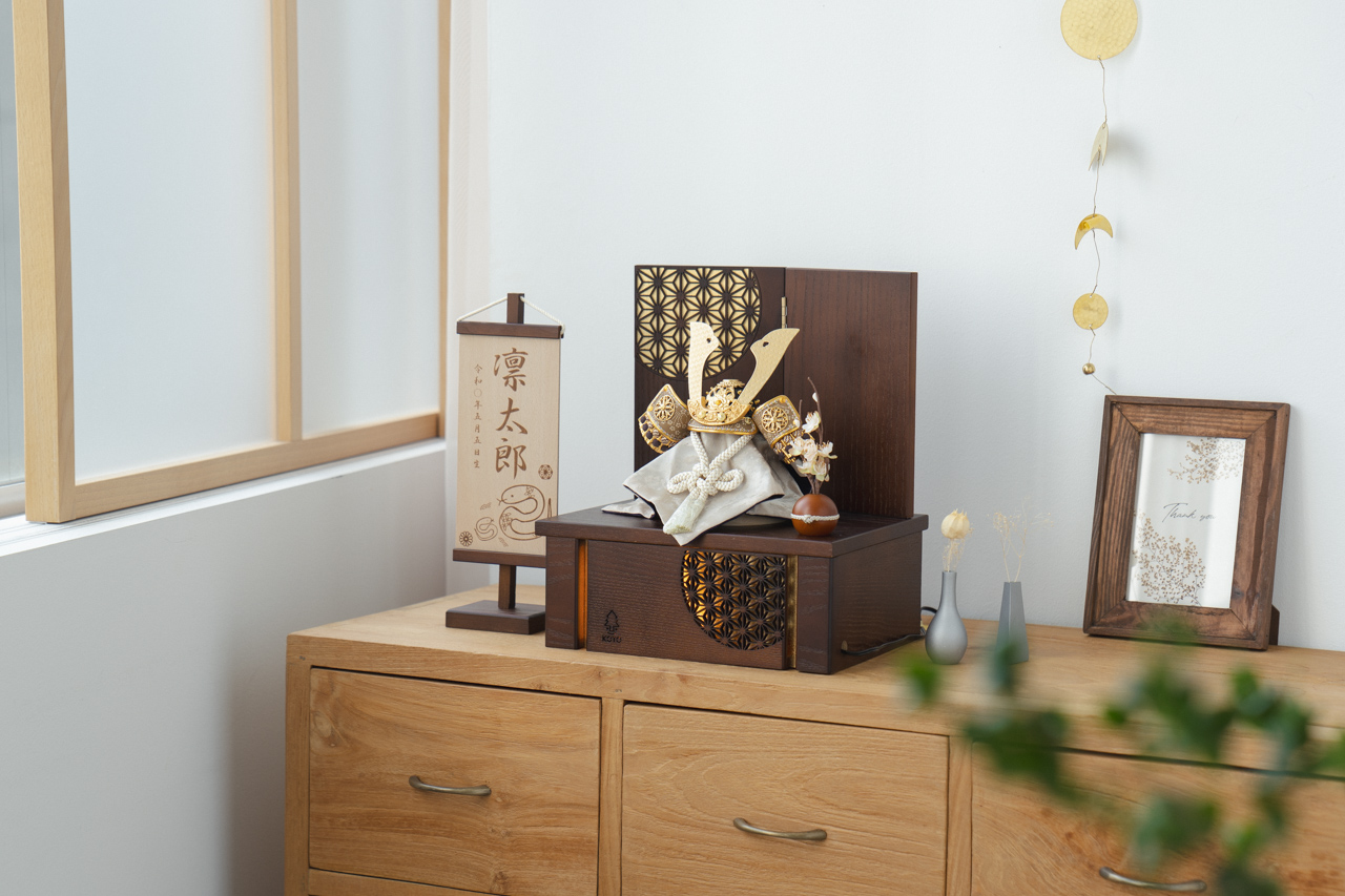 親しみやすく、お子様と手に取って一緒に飾れる「ことの兜」です。