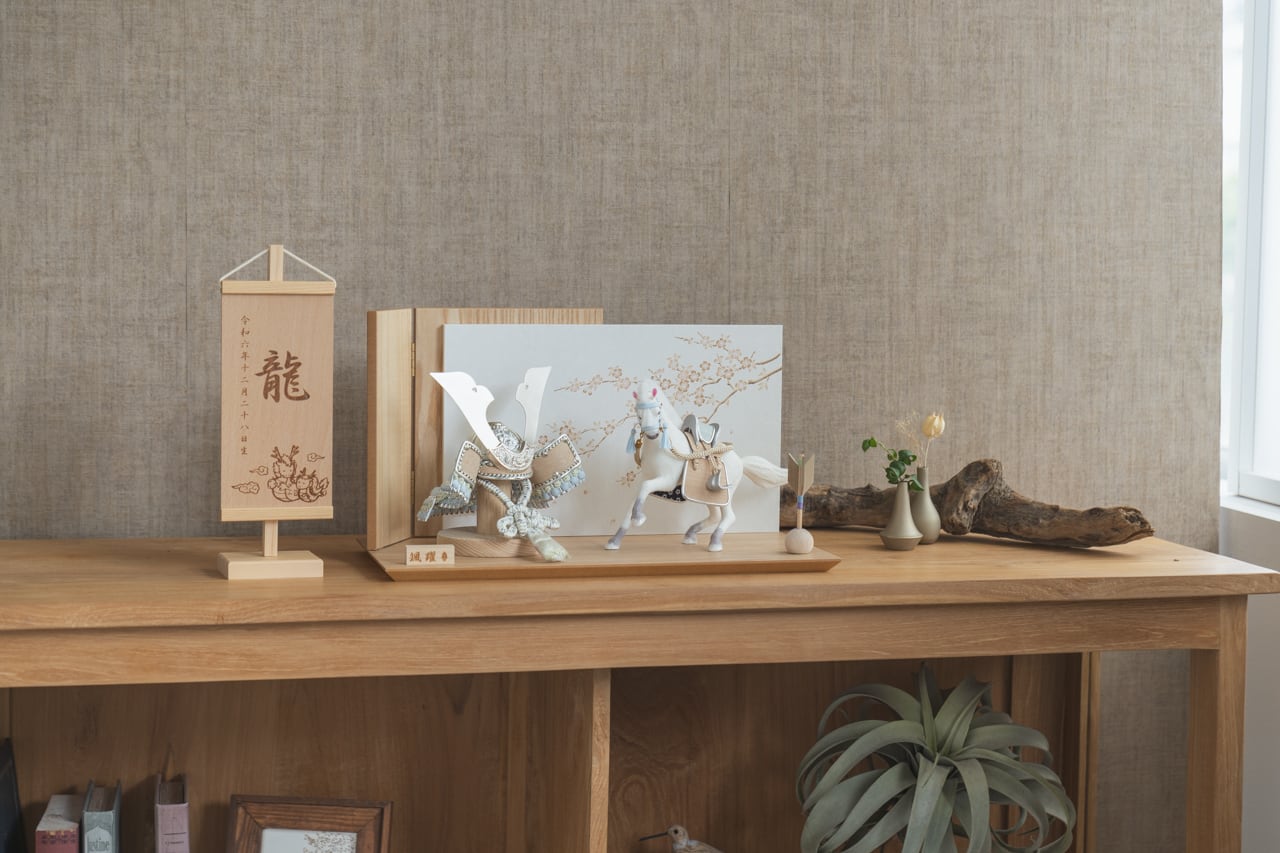 伝統的な兜と、勝利や誇りの象徴でもあり、古くから富や権力、出世の象徴のシンボルとされる馬を組み合わた「ことの颯躍セット」です。