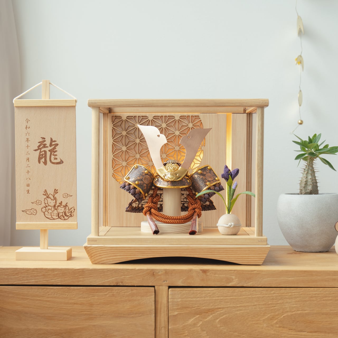 親しみやすく、お子様と手に取って一緒に飾れる「ことの兜」です。