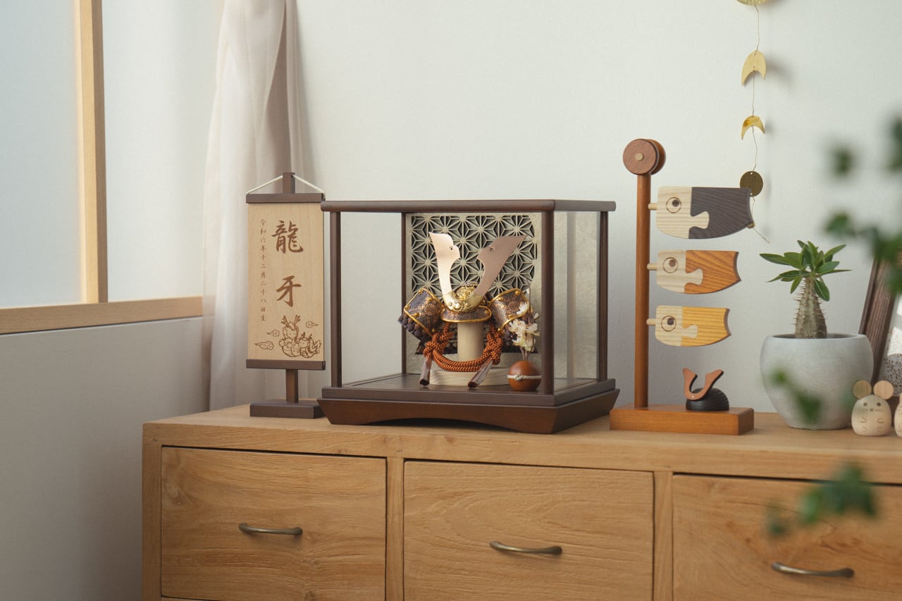 親しみやすく、お子様と手に取って一緒に飾れる「ことの兜」です。