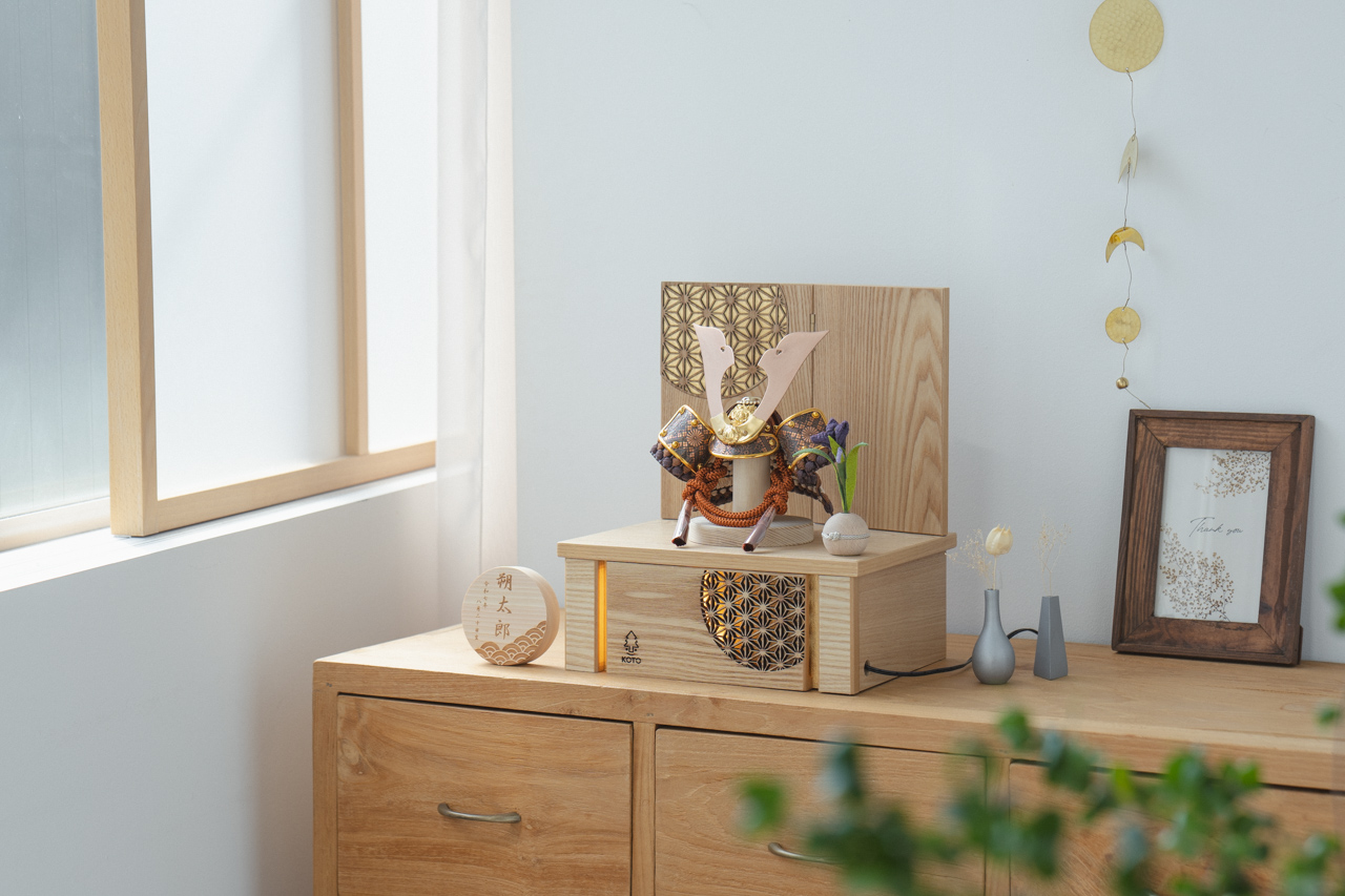 親しみやすく、お子様と手に取って一緒に飾れる「ことの兜」です。