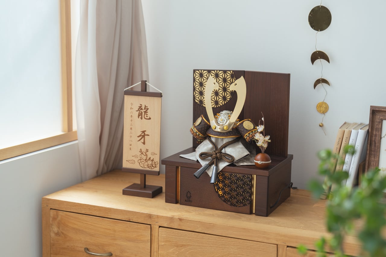 親しみやすく、お子様と手に取って一緒に飾れる「ことの兜」です。