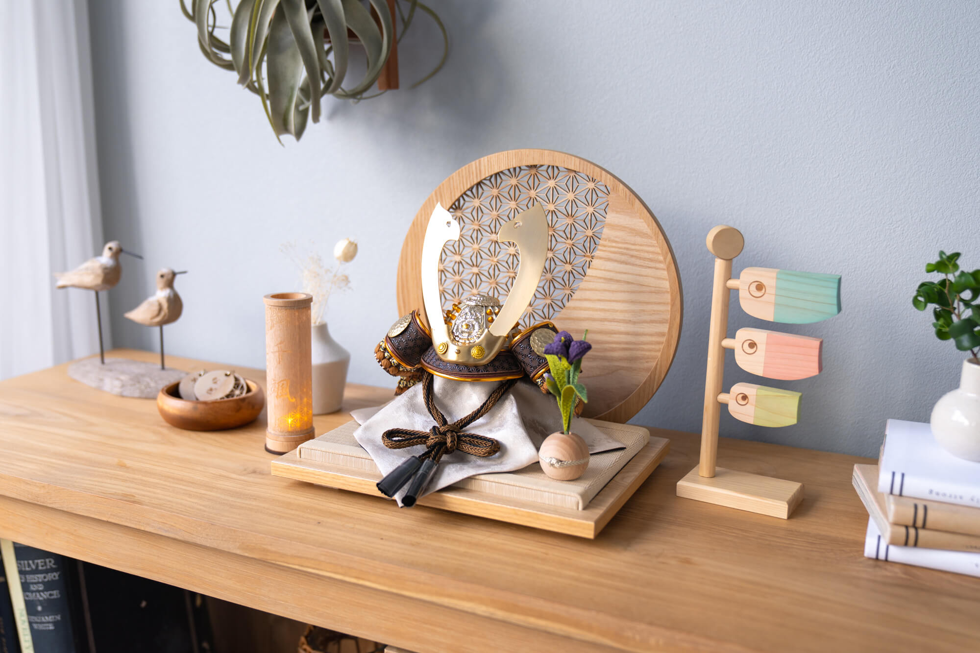 天然木の風合いを生かした木都の破魔弓は五月人形と一緒に飾るのにぴったり。