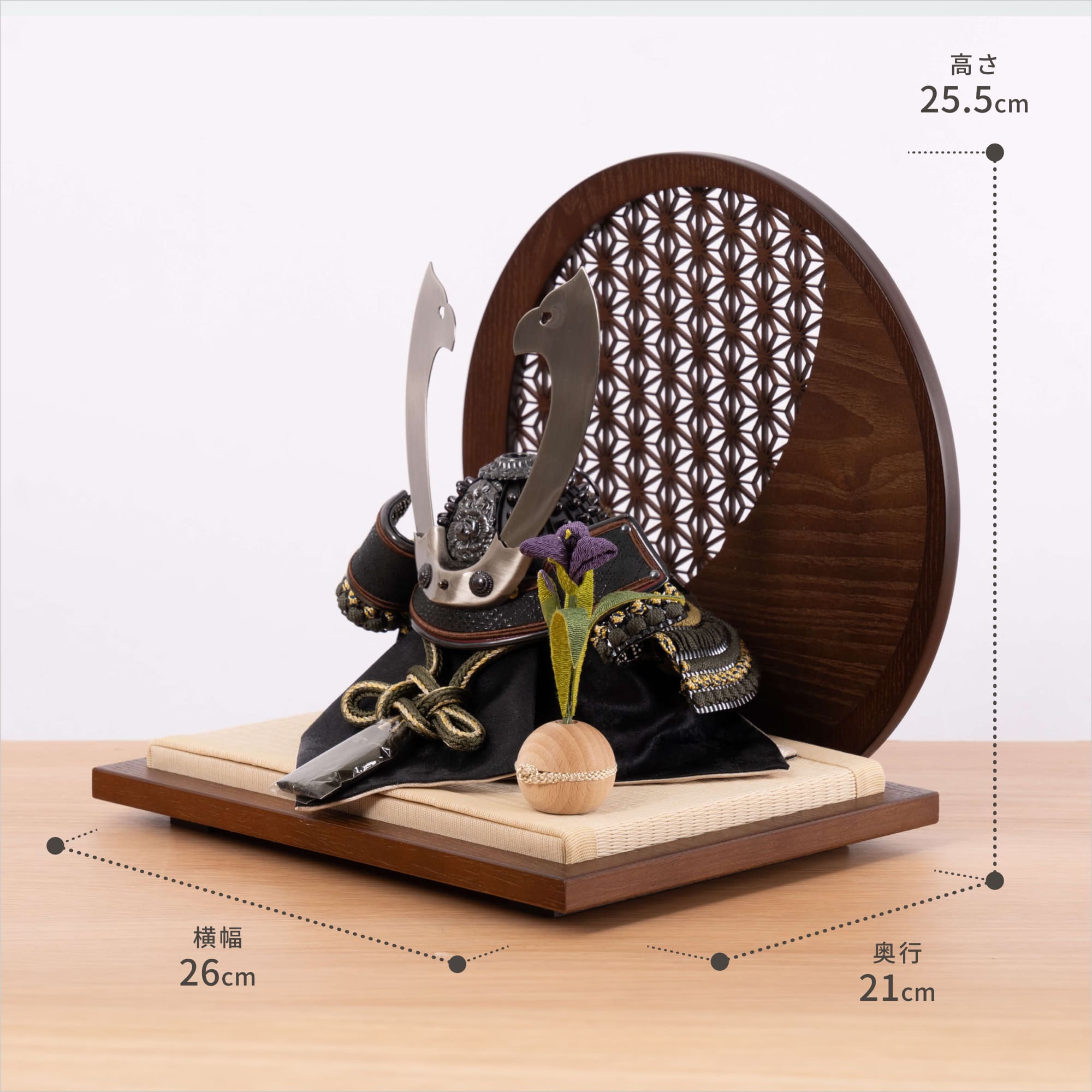 伝統的な製法で作られた兜に天然木の素材を活かしたシンプルなデザインの兜です。