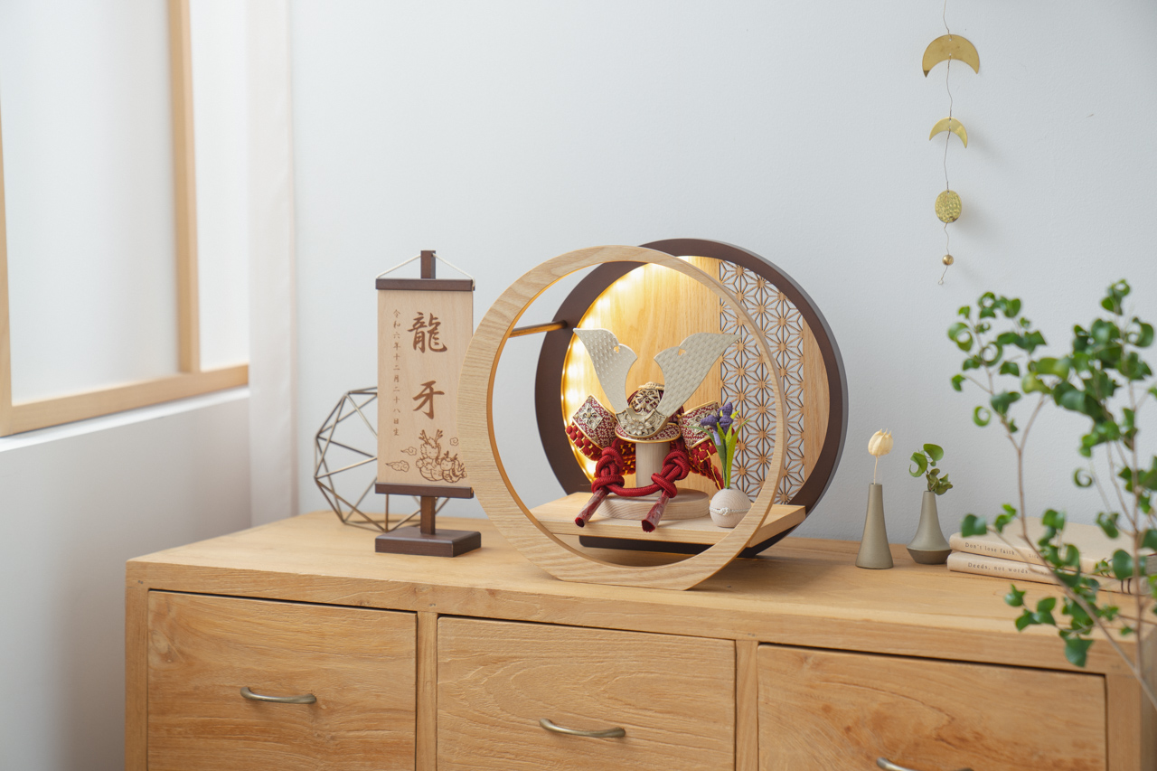 ことの兜 つばき 灯月型飾台 麻の葉 N