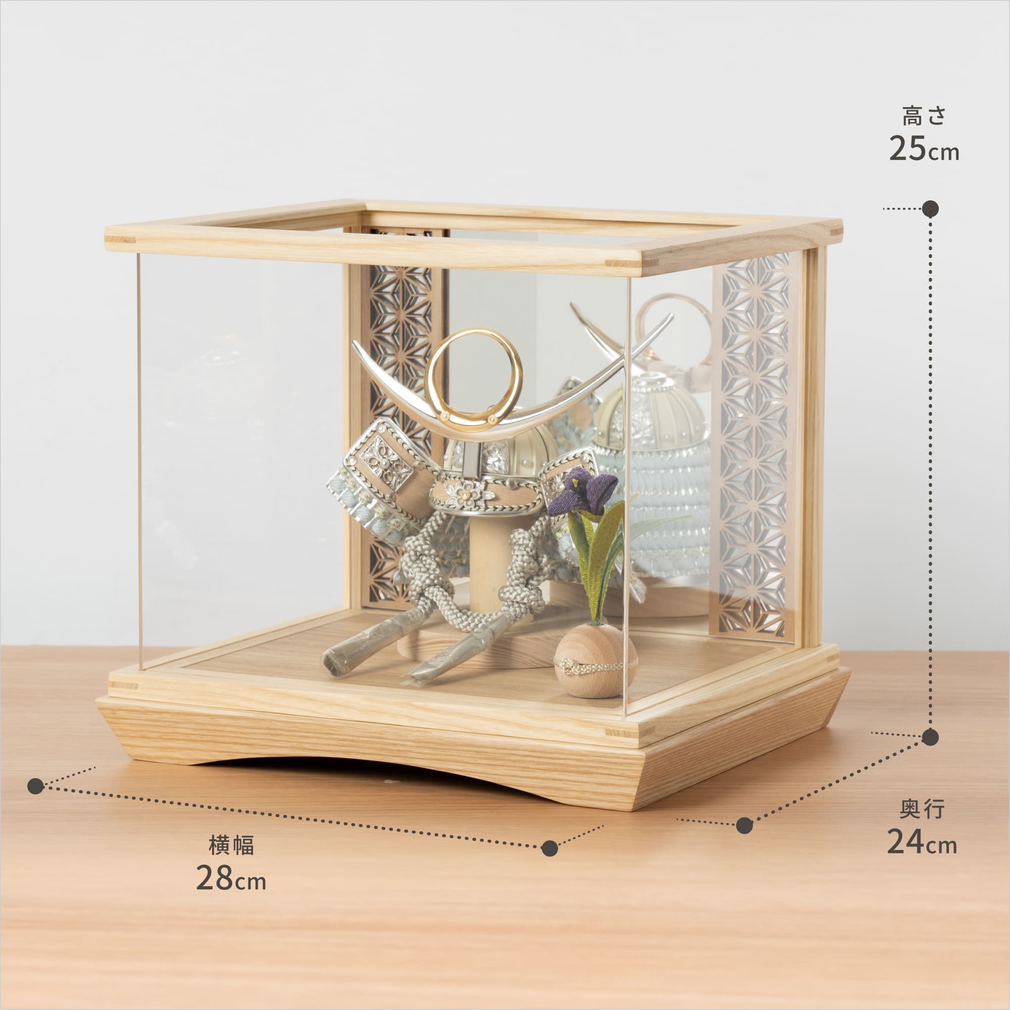 伝統的な製法で作られた兜に天然木の素材を活かしたシンプルなデザインの兜です。モダンでシンプルなデザインは、どんなお部屋の雰囲気にもピッタリ。