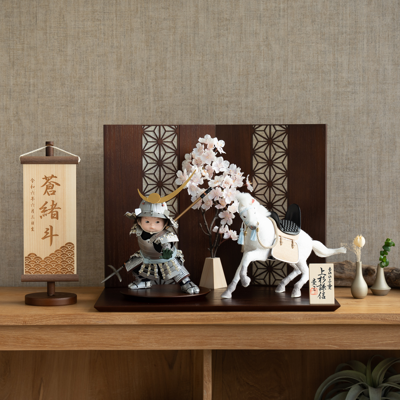 細部までこだわった高いデザイン性が魅力の 鈴甲子の子供大将と馬飾りとのセットです。